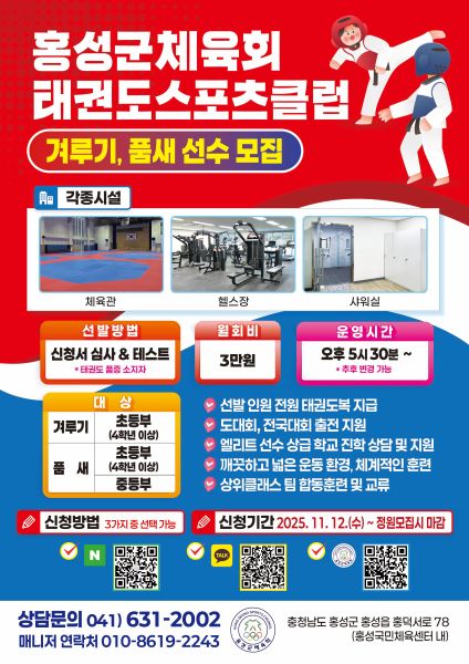 2025년 홍성군체육회 태권도스포츠클럽 지도자 최종합격자 공고